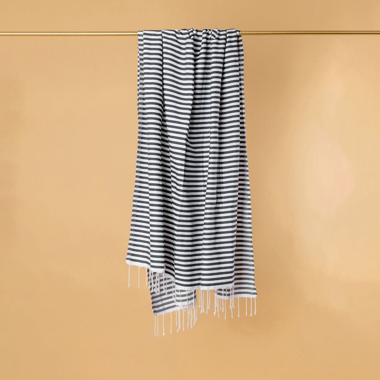 Black striped, medium-weight TURCO towel. Perfect for your sauna and beach trips.